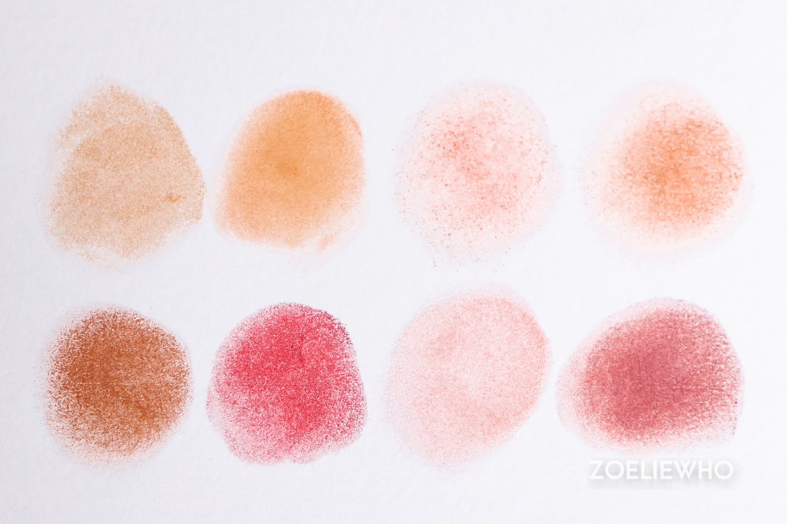 When I swatched the palette, I was so surprised by how tiny the powder particles are. They are so fine, soft and velvety, similar to the loose powder from Althea's Petal Velvet range. The colours are buildable and easily blended out. You can start off sheer if you tap onto the colour lightly. You can also start off heavy if you take one swipe with your finger and tap onto your lids for more pigmentation. You'd be surprised by how pigmented these colours are.